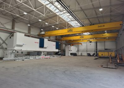 Thanks to two new press brakes with a pressure of up to 2,750 tons, we will also be able to bend thick sheets and bend thick plates up to 100 mm thick on one meter in length. The maximum bending length is 16 meters with a thickness of 20 mm.